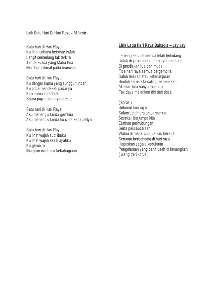 Satu hari di hari raya. Satu hari di hari raya. Nasir berserta lirik.selamat hari raya aidilfitri, maaf zahir & batin. Tanda kuasa yang maha esa.